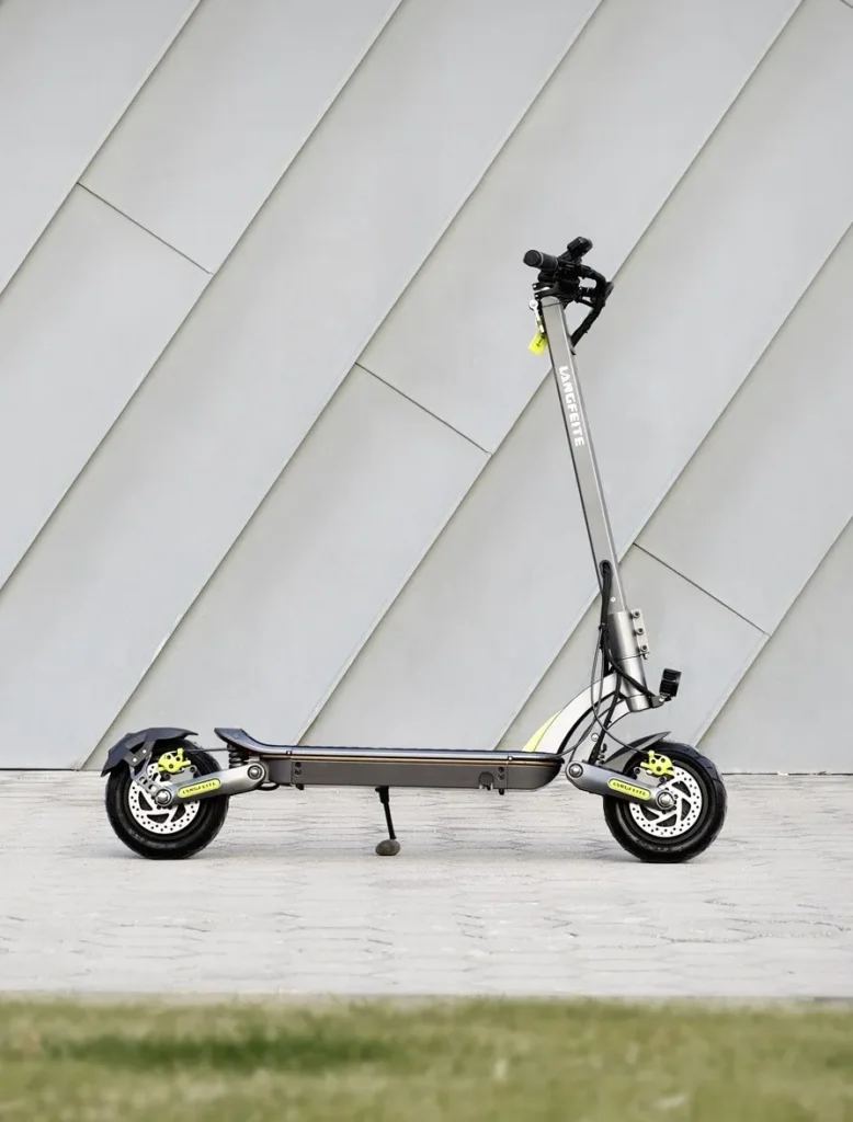 Langfeite GT2 Mini es un magnífico scooter eléctrico con un diseño sorprendente. Los 2 motores duales de 1200 W proporcionan un flujo constante de potencia, con una salida máxima de 2940 W, y mantienen una velocidad alta óptima de 60 km/h a través de 2 controladores de onda sinusoidal de 25 A.